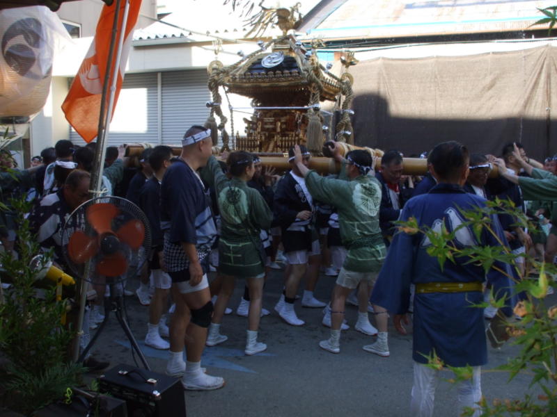 | 神輿「まだまだ」 | 神酒所完成 | 水掛準備、伴田家 |